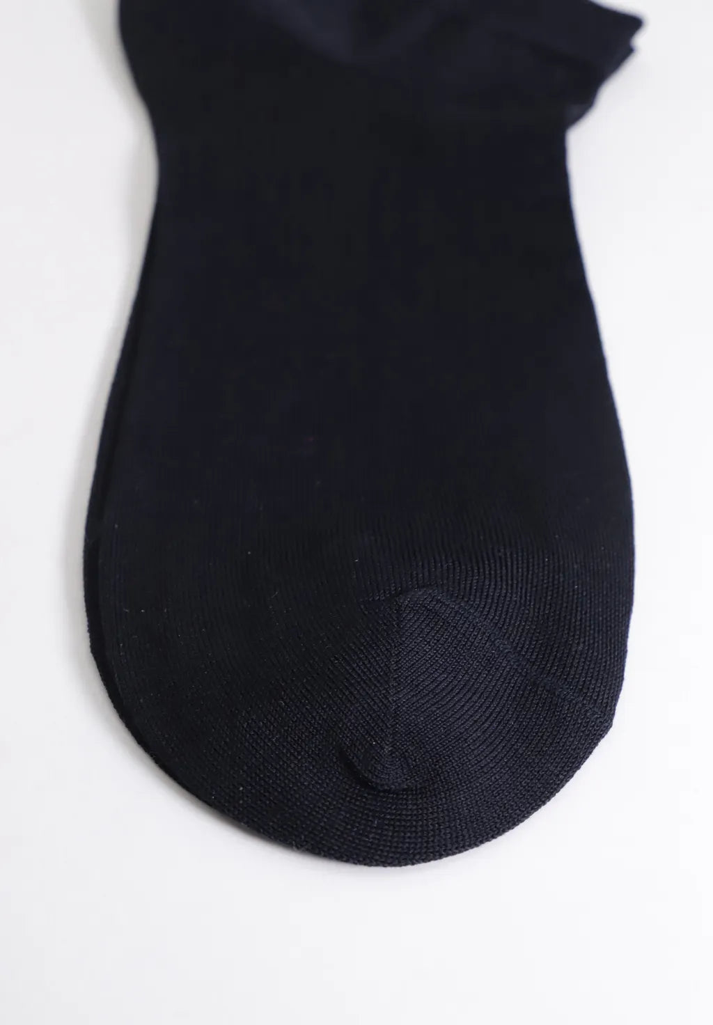 La calza ha una lunghezza tale che quando la si indossa si vede solo il bordo che esce dalla scarpa. Un bordino che tra l'altro è elastico e aderisce perfettamente alla caviglia, evitando che la calza scenda dentro la scarpa. Il tallone e la punta sono rinforzati così da essere ancora più resistenti e comodi. La cucitura sulla punta è impercettibile perché ultrapiatta.