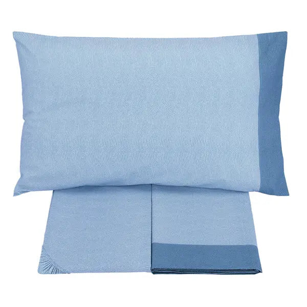 Completo lenzuolo stampato su madapolam di puro cotone, disegno falso unito.