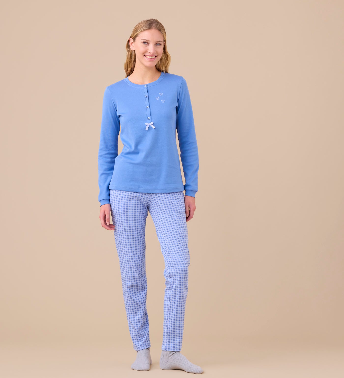 Pigiama Donna Caldo Cotone Serafino Lungo DR63N1