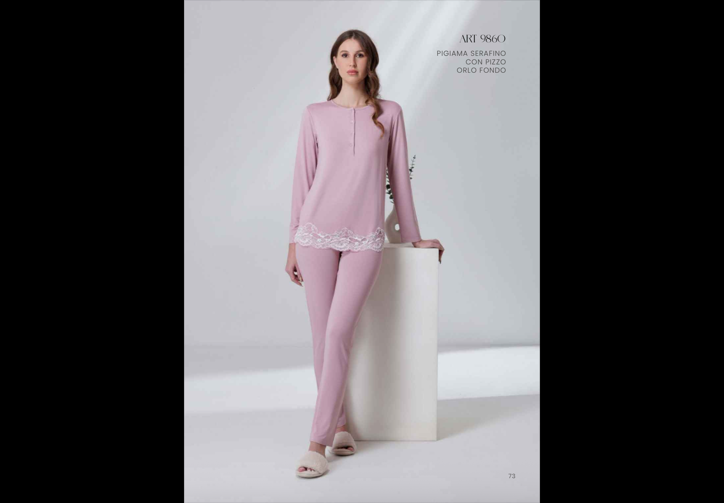 Pigiama serafino in viscosa con pizzo sul fondo.