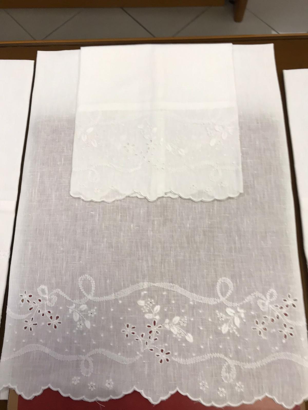 Coppia asciugamani 1+1 smerlata bianca in puro lino con ricamo Bianco.