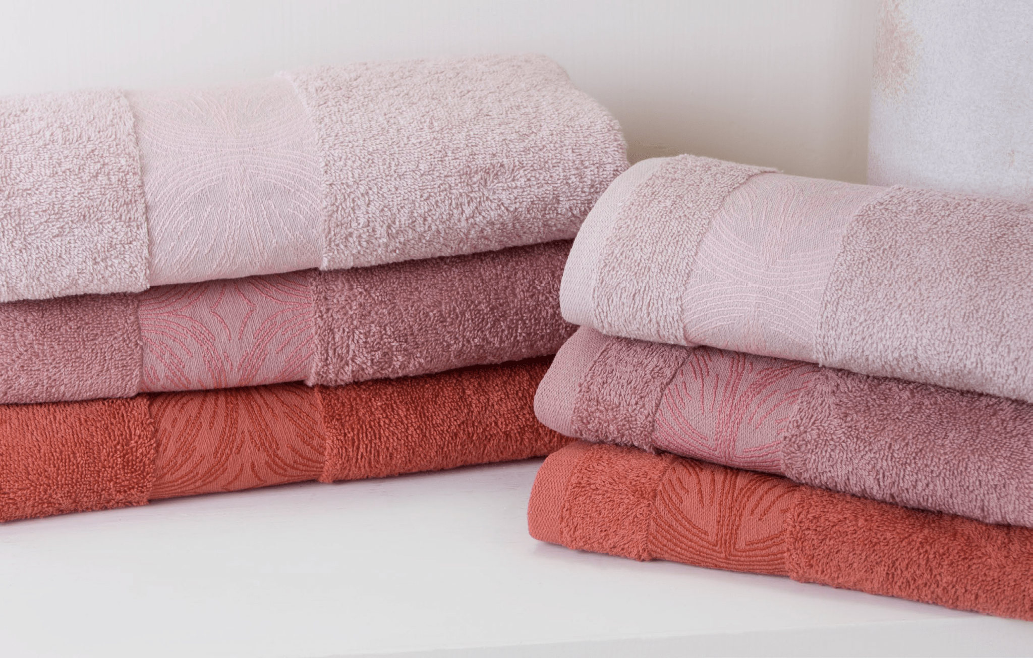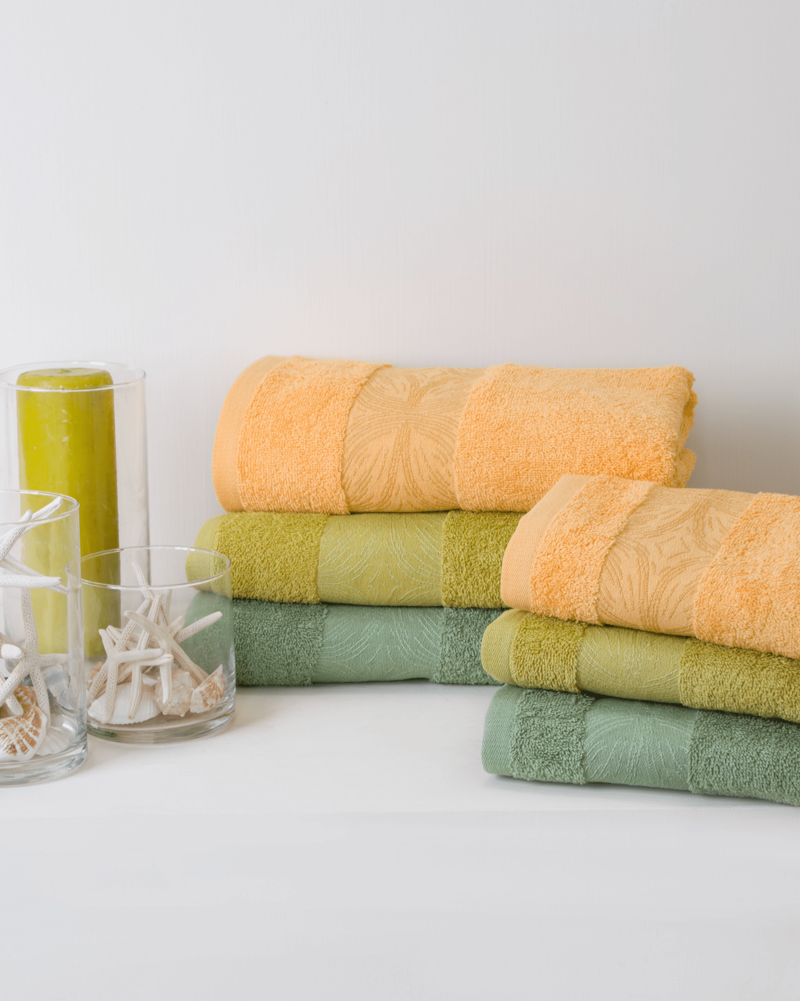 Set Asciugamani in spugna 420 Gr con bordo ricamato in cotone con Greca a fantasia.
