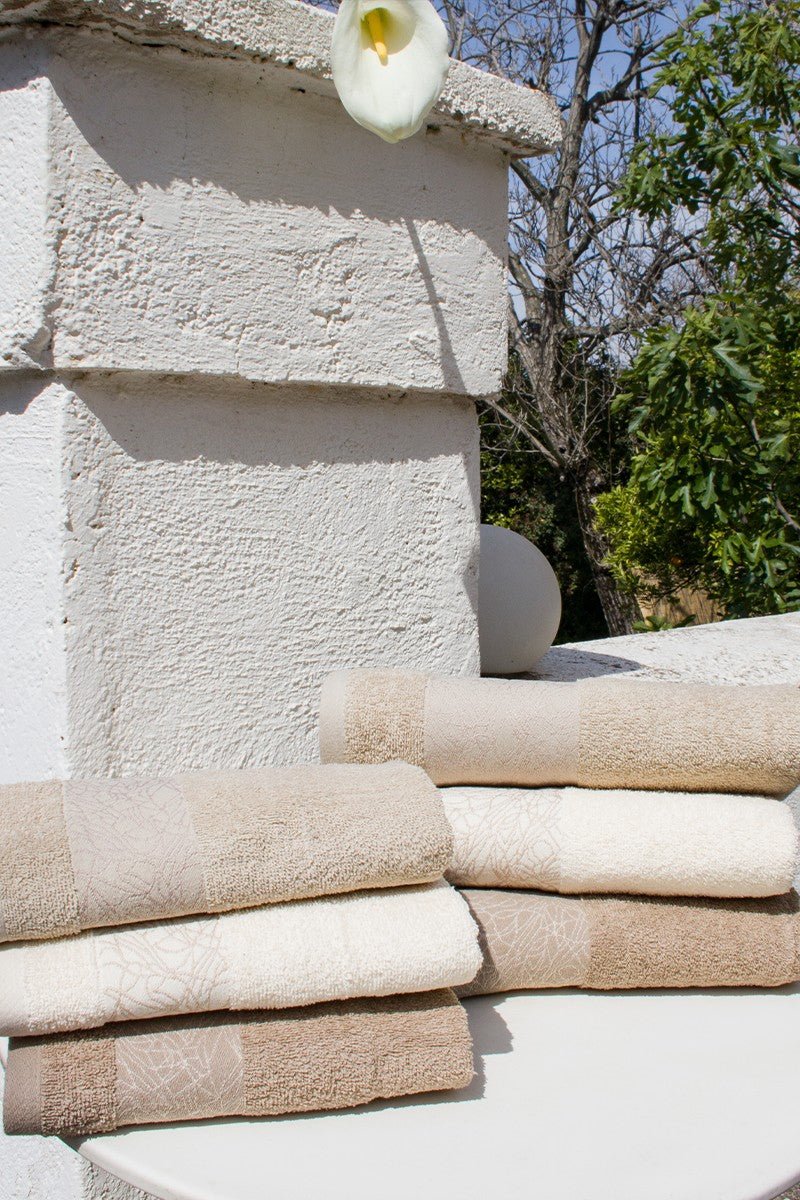 Set Asciugamani in spugna 420 Gr con bordo ricamato in cotone a fantasia.