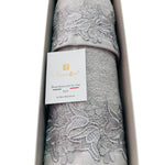 Set Asciugamani in spugna 420 Gr con applicazione di pizzo sul bordo.