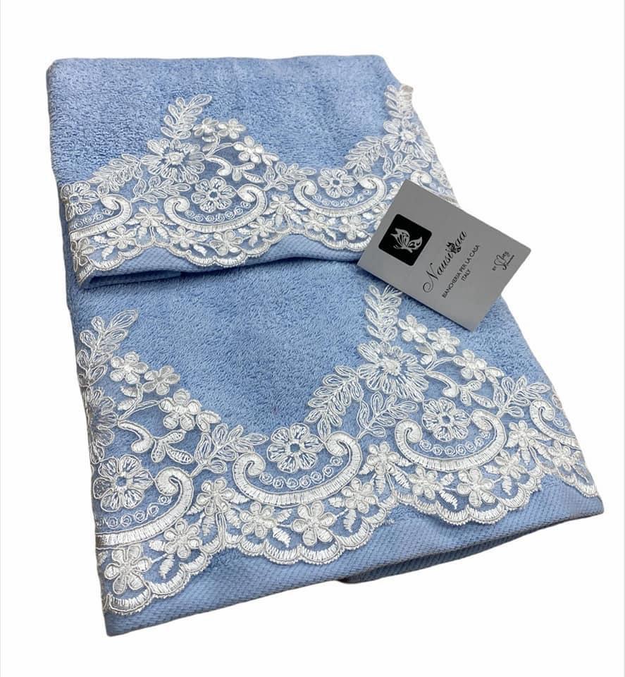 Coppia 1+1 Asciugamani Lino Ricamato Bellavia NB475