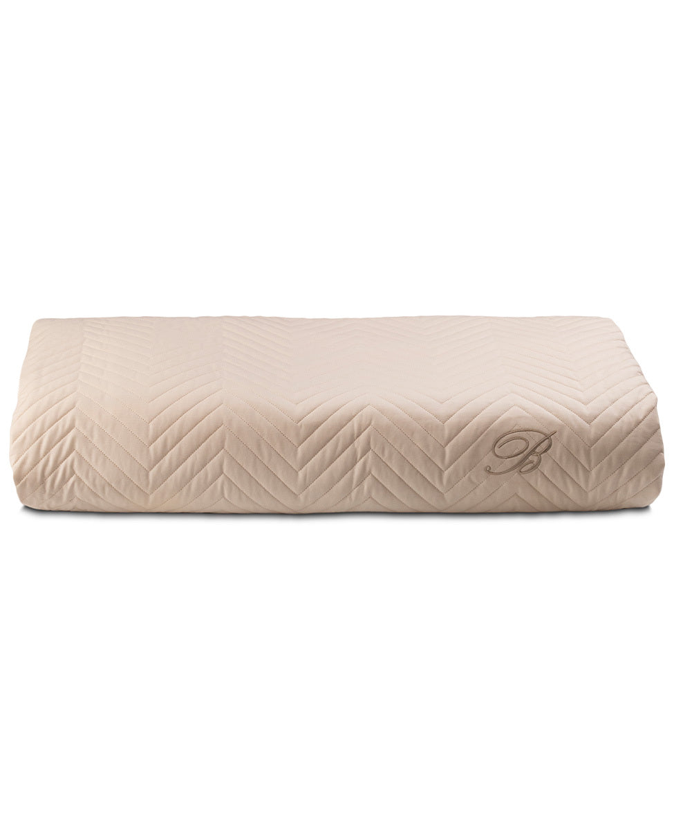 Copriletto matrimoniale trapuntato in percalle di cotone tinta unita, monogramma B ricamato con effetto tridimensionale.