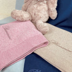 Copertina per culla e carrozzina in misto cachemire tinta unita con logo ricamato.