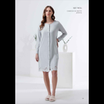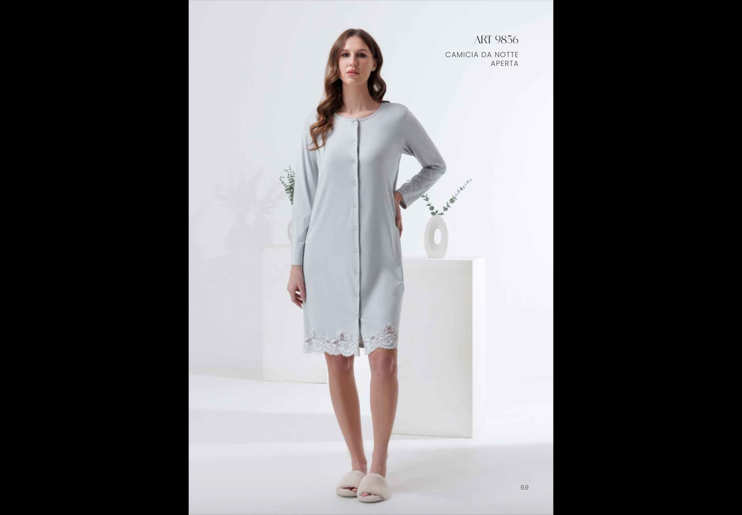 Camicia da notte aperta in viscosa con balza di pizzo doppia nuance.