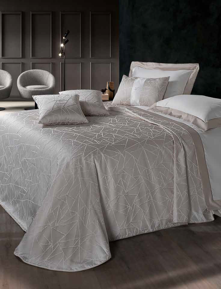 Copriletto Matrimoniale Geometrie in raso Jacquard Con fantasia Geometrica in rilievo.
