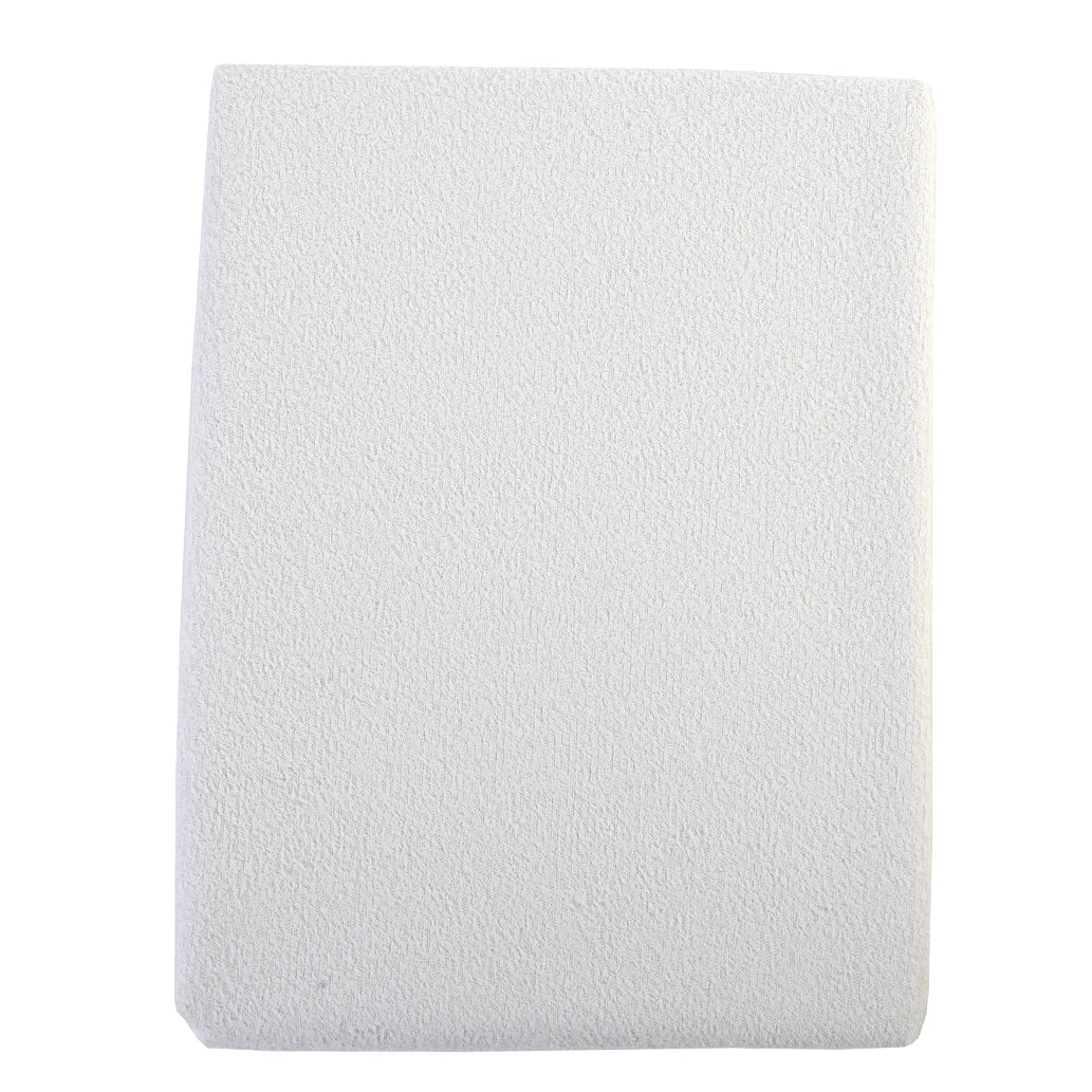 coprimaterasso in spugna rasata con applicazione di plastica sul piano letto e morbidi elastici agli angoli.