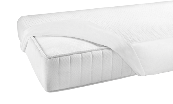 Coprimaterasso jacquard in spugna idrofila di puro cotone, angoli con elastici che favoriscono la presa al materasso.