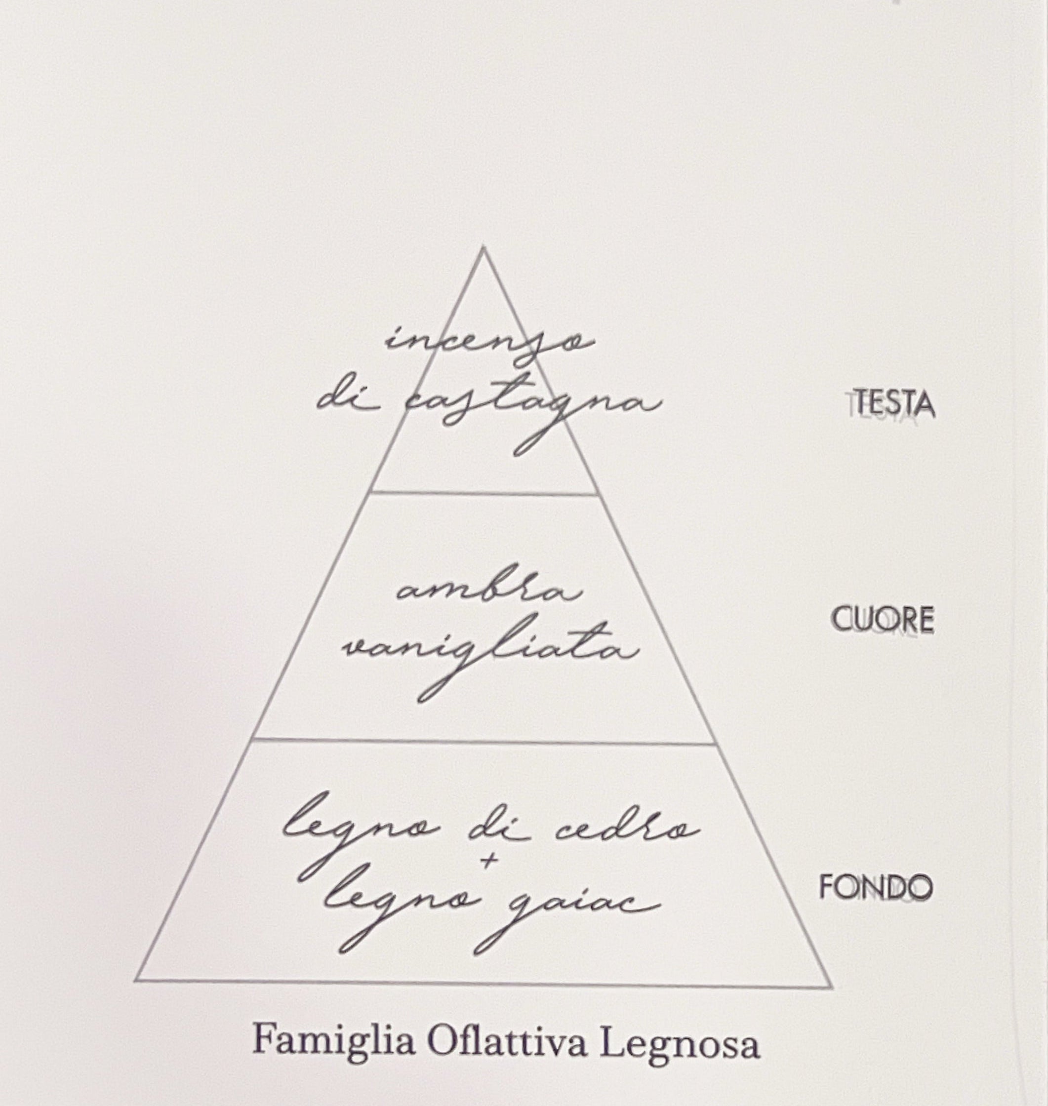 La regalità dell'incenso incontra la dolcezza della castagna in un intreccio tra cuore e fondo di ambra vaniglia e legni.