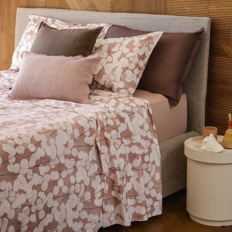 Le federe e il lenzuolo-copriletto sono in percalle di puro cotone stampato; tutto il resto del completo è in percalle tinta unita.