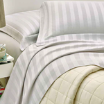 Completo di lenzuola in raso di cotone in raso di cotone con righe chiaro-scuro.
