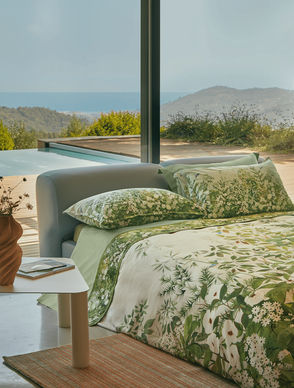 Lenzuola matrimoniale in puro cotone con stampa moderna.
