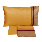 Realizzato in raso di puro cotone 300TC, è impreziosito da un'importante balza formata da tre bordi di uguale altezza, di diverso colore ed uno più alto del colore del bordo centrale.