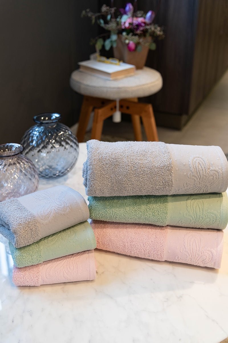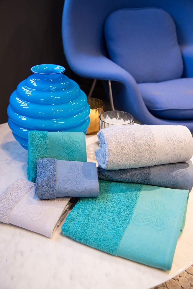 Set Asciugamani in spugna 420 Gr con bordo ricamato in cotone.