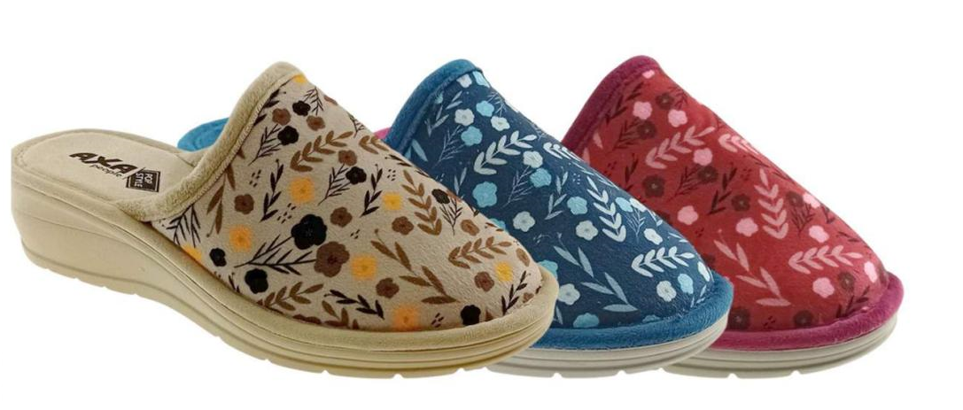 Rilassati con stile con queste morbide pantofole da donna, perfette per donare comfort ai tuoi piedi in ogni momento della giornata. Realizzate in tessuto caldo e vellutato, presentano una graziosa fantasia floreale disponibile in tre varianti di colore: beige, blu e bordeaux.