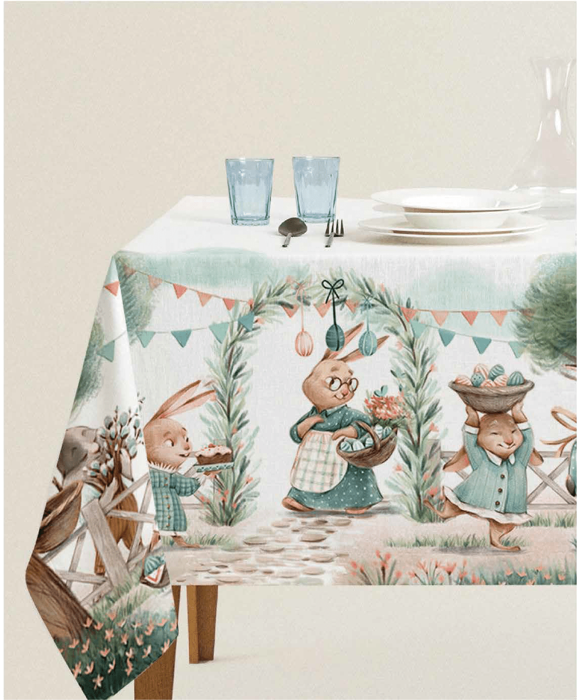 Tovaglia Pasquale maestri cotonieri con stampa digitale, disponibile x6, x12 e x18 posti.