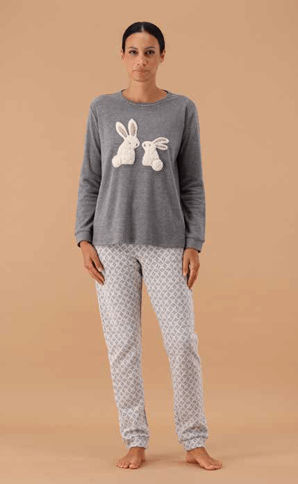 Pigiama bicolore con maglia unita in tinto filo melange