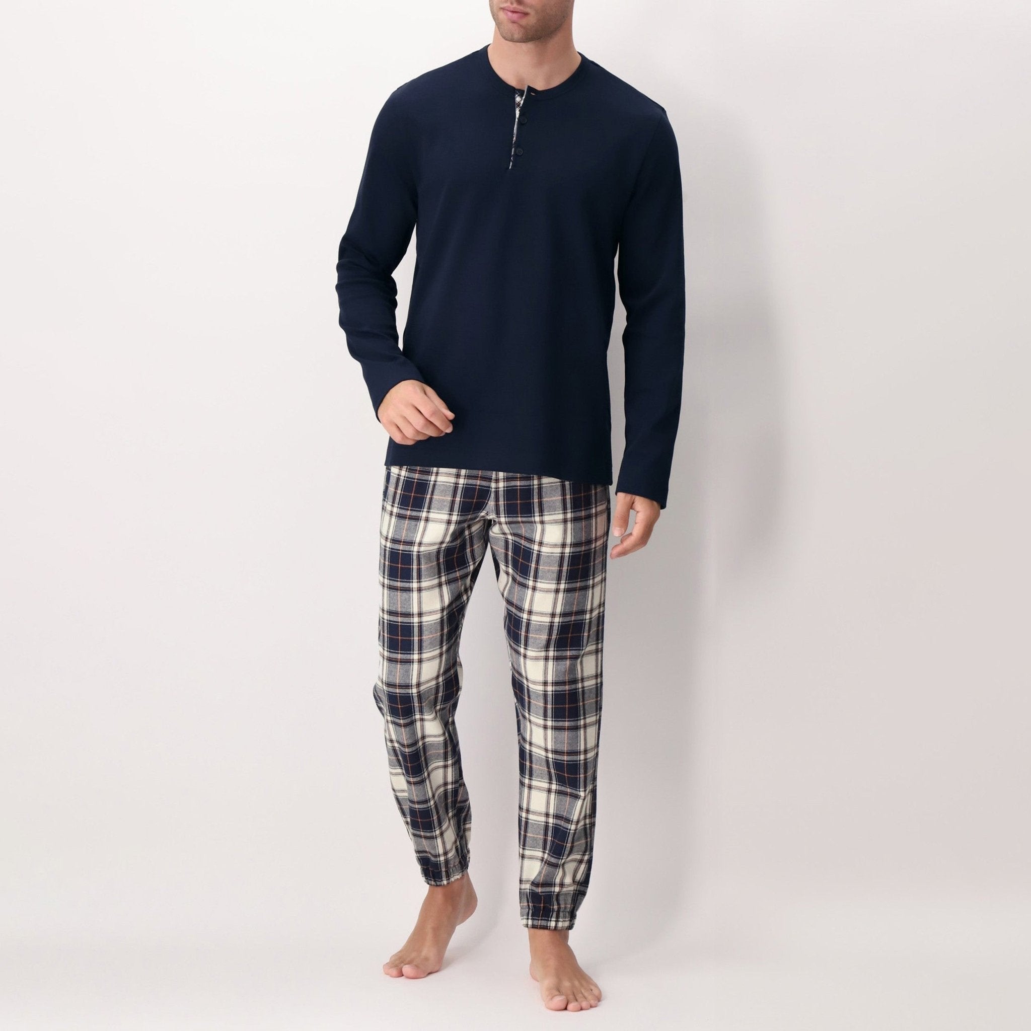 Pigiama Uomo Serafino Con Pantalone In Flanella Stampa Quadri