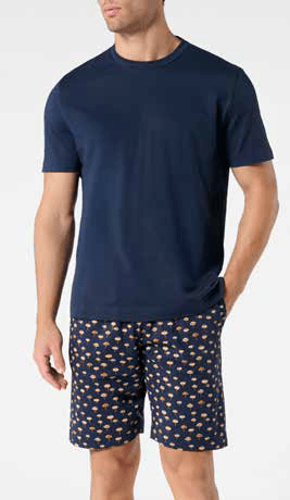 Pigiama corto da uomo in cotone con pantalone a fantasia.