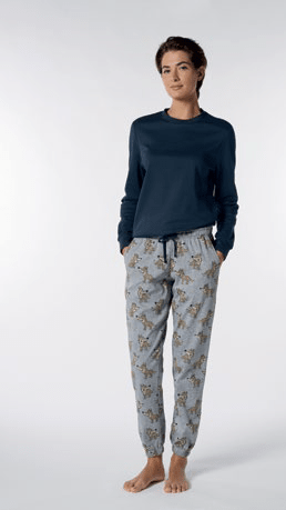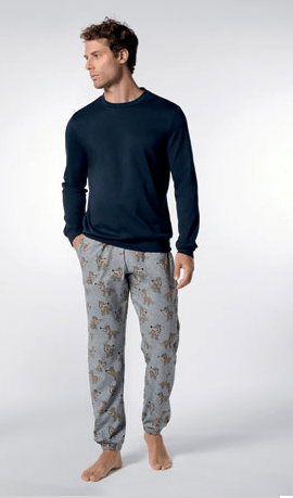 Pigiama Girocollo in Caldo Cotone con pantalone a fantasia.