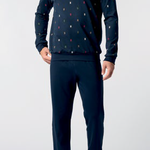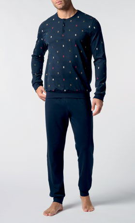 Pigiama Serafino in caldo cotone con 3 bottoni, con polsini