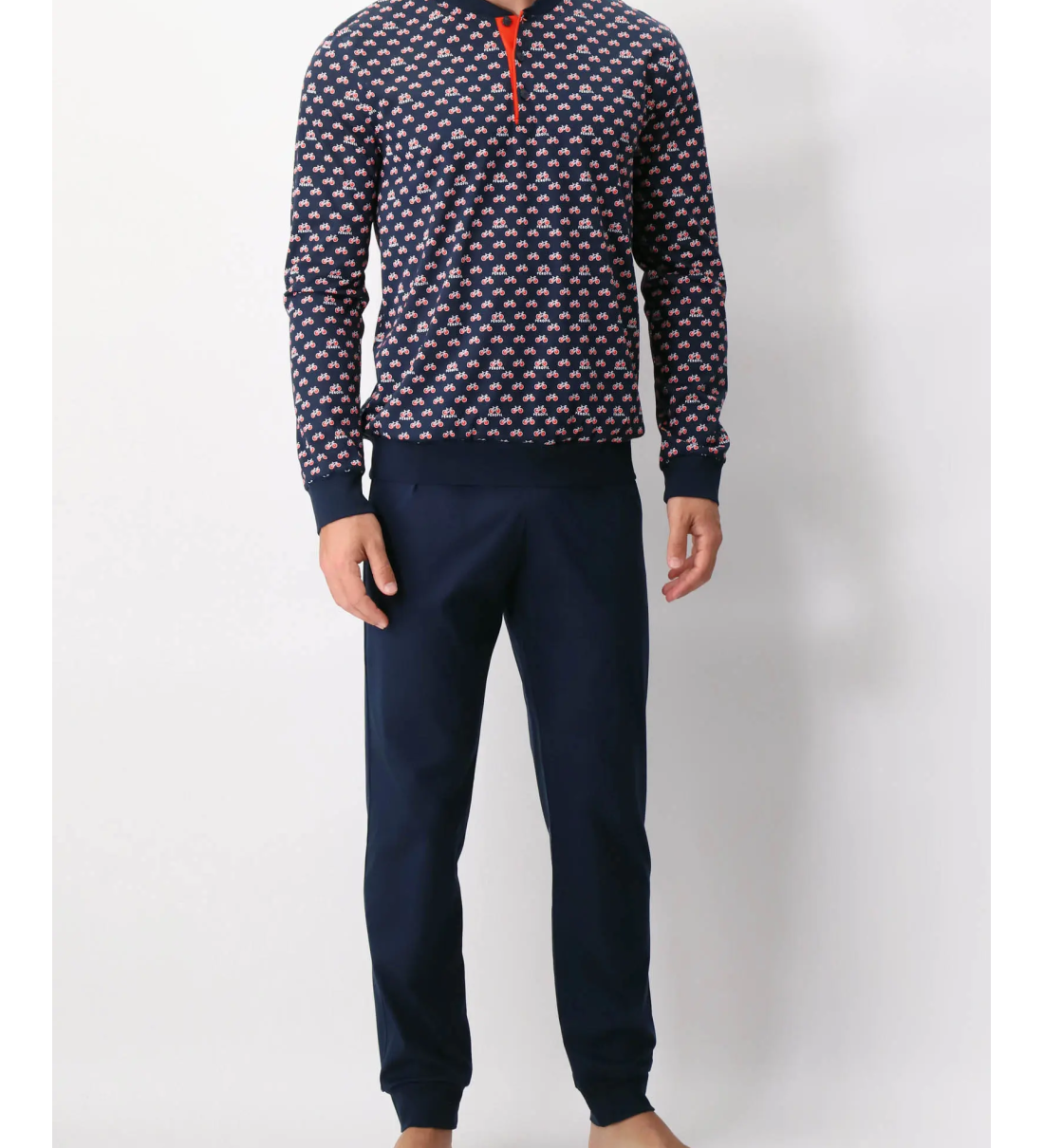 Pigiama Perofil Lupetto con Bottoni Stampa Chevron