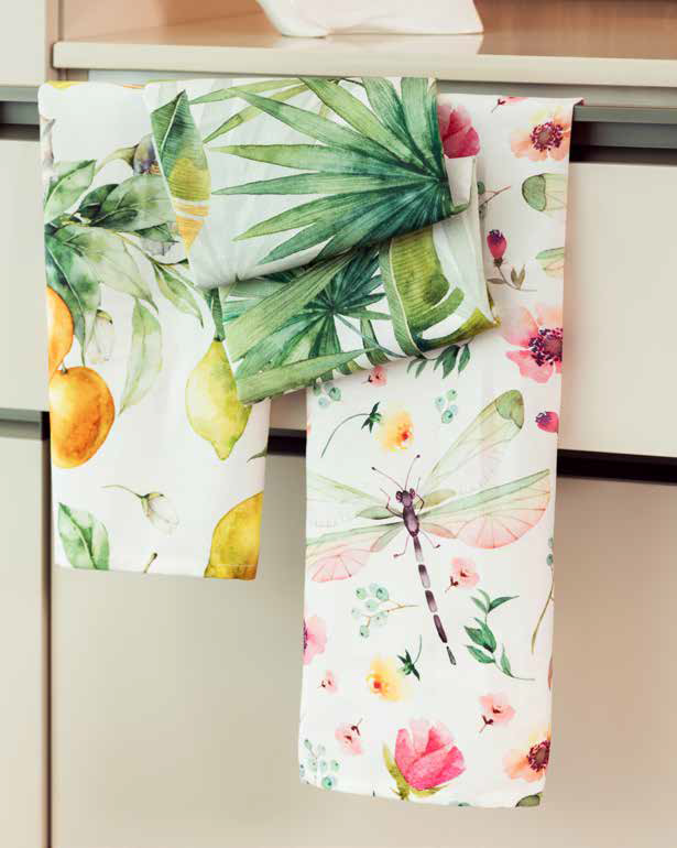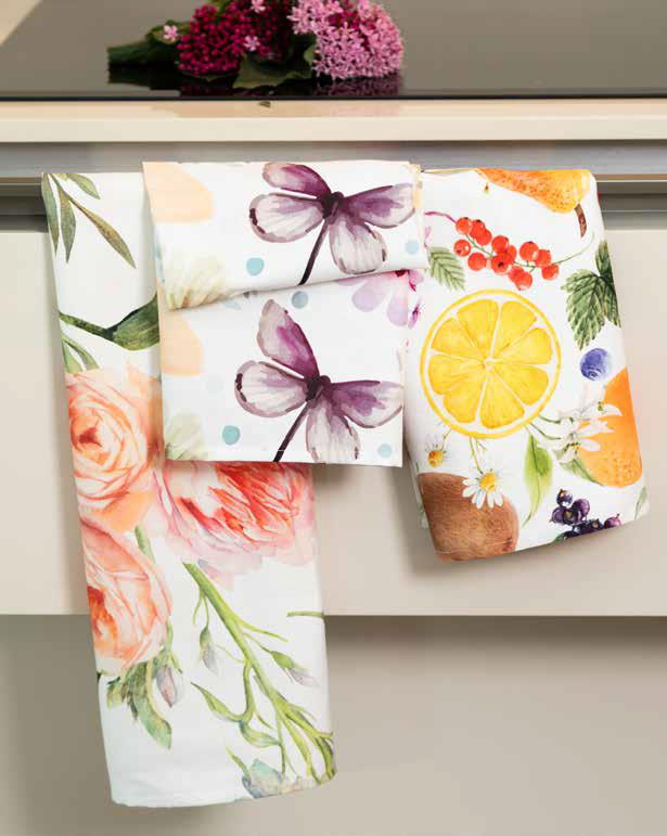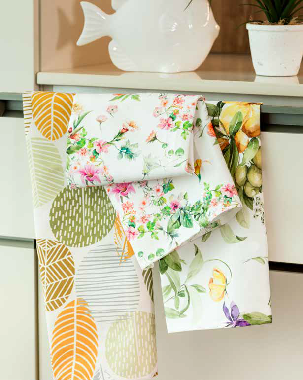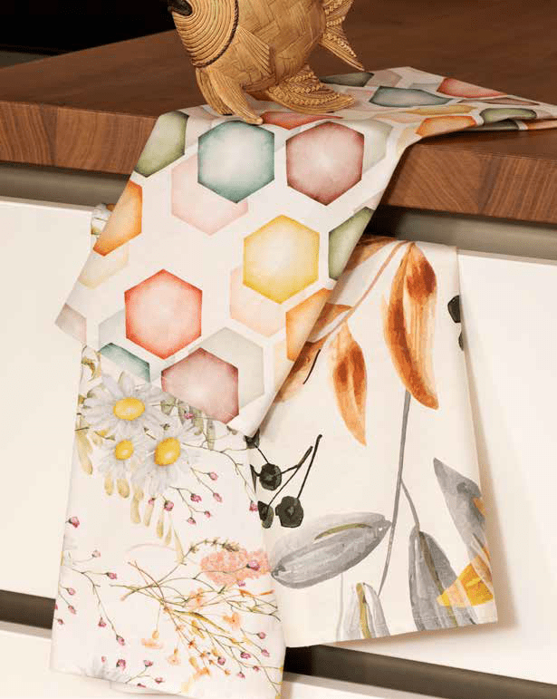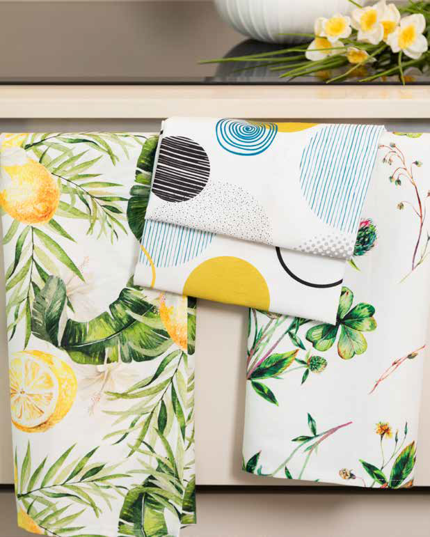 Set da 3 strofinacci in 100% cotone Panama con stampa digitale.