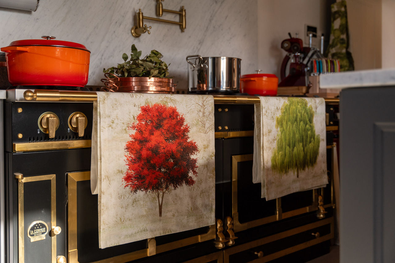 Il runner GREESON in puro lino porta in casa tua la scena di un parco con i suoi alberi centenari e dei loro colori che scandiscono il ritmo delle stagioni.