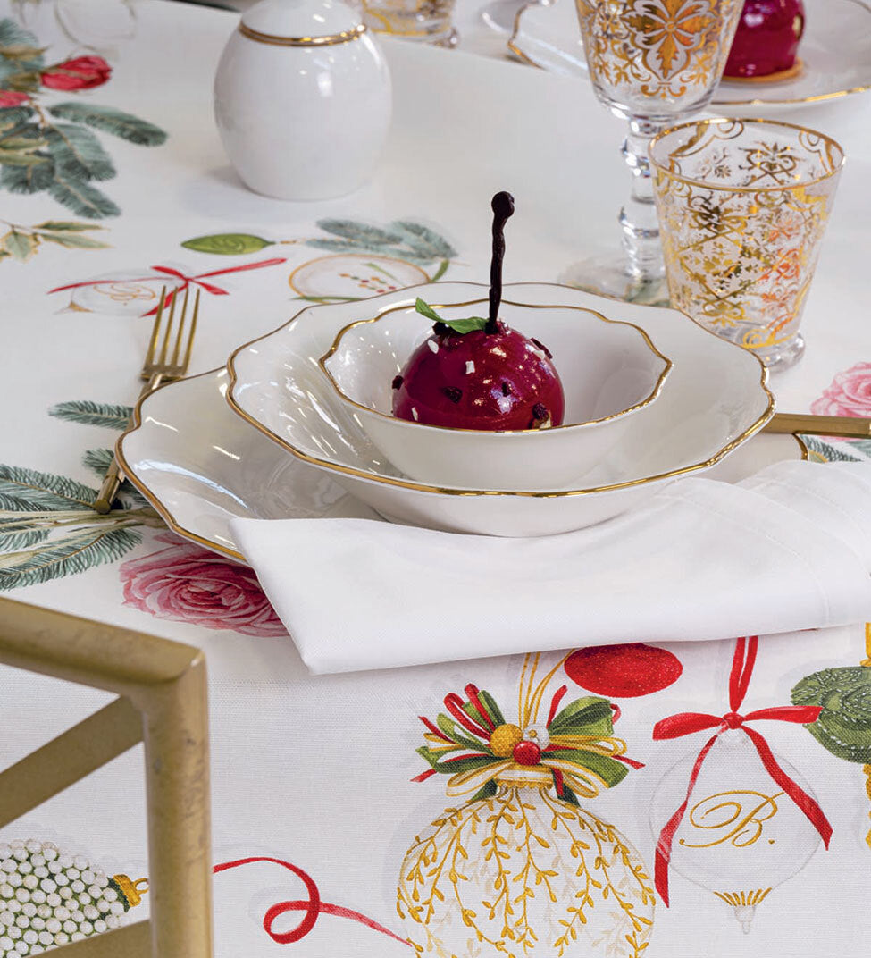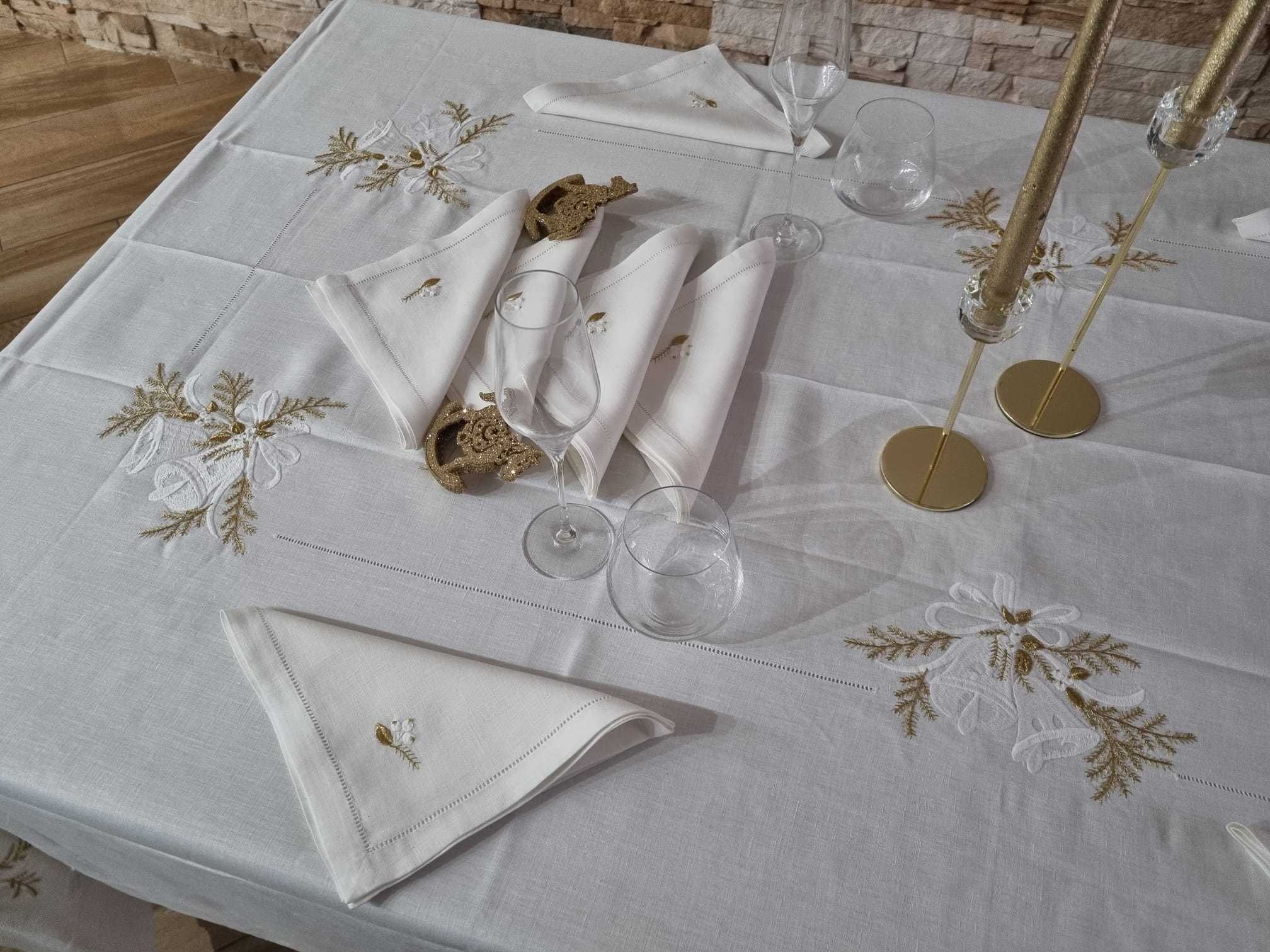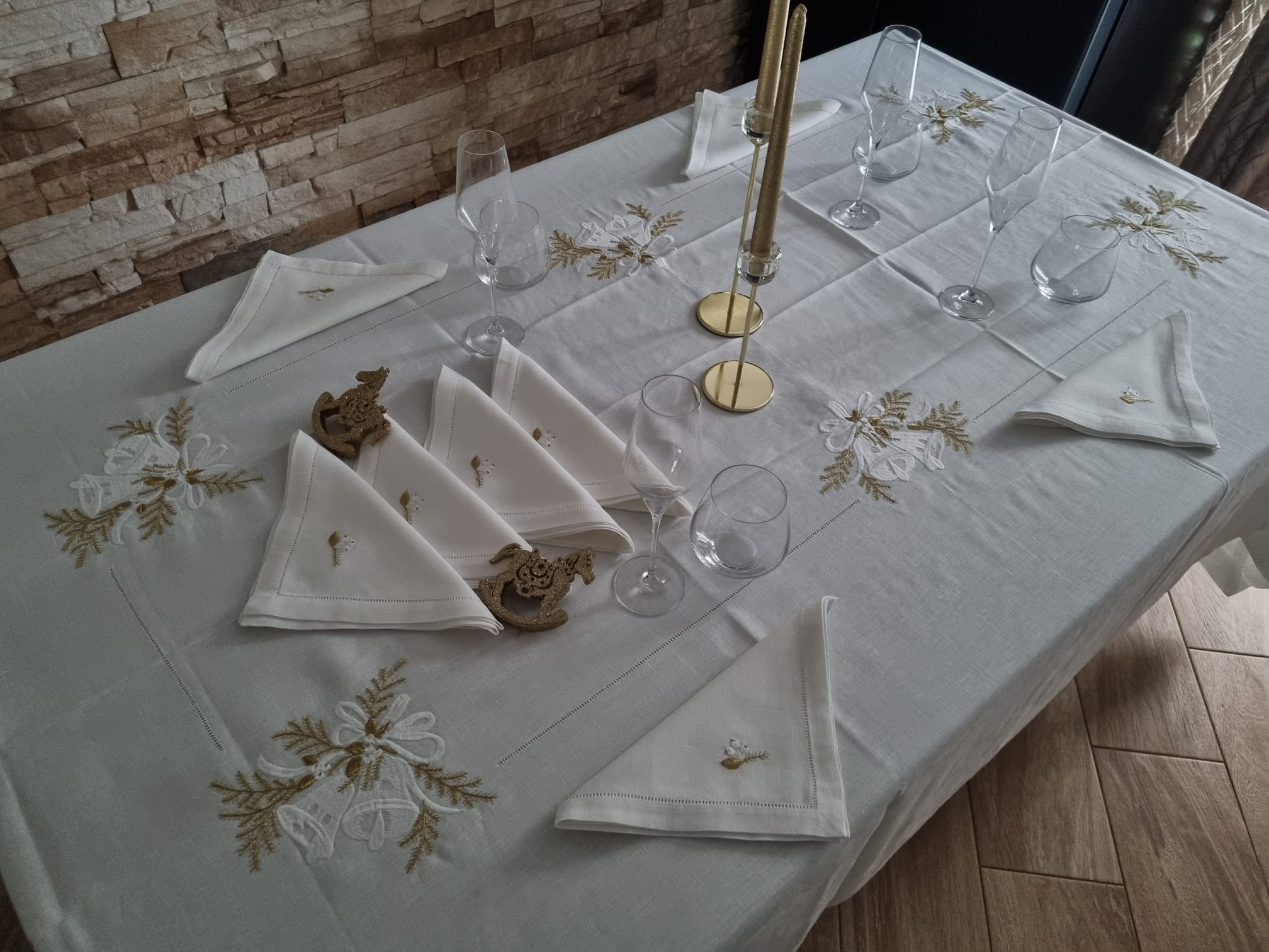 Tovaglia x12 in Lino I Maestri Del Ricamo Fiocco Di Natale