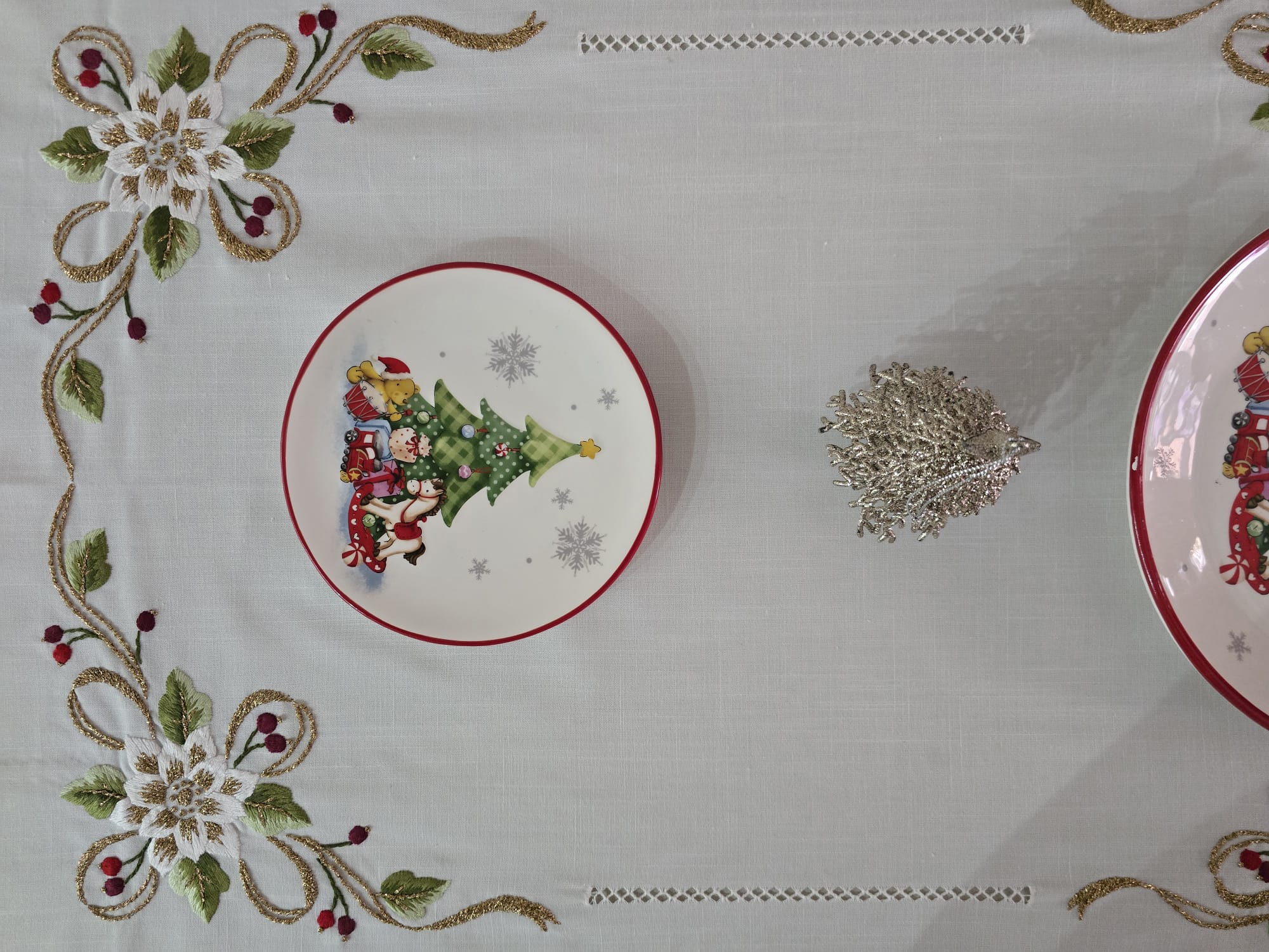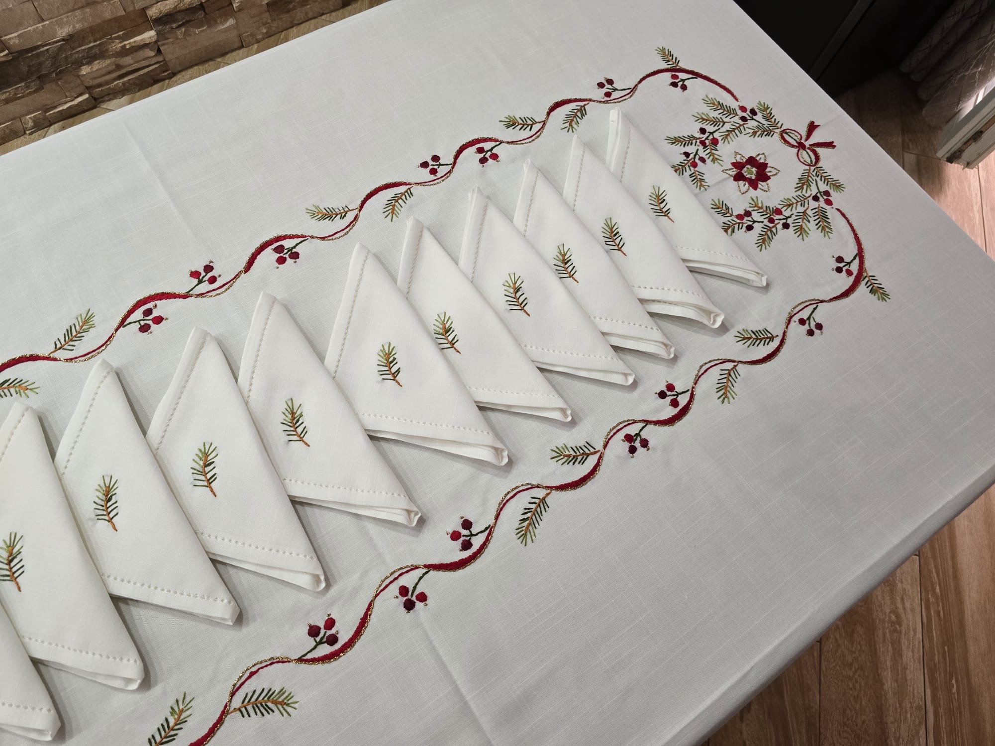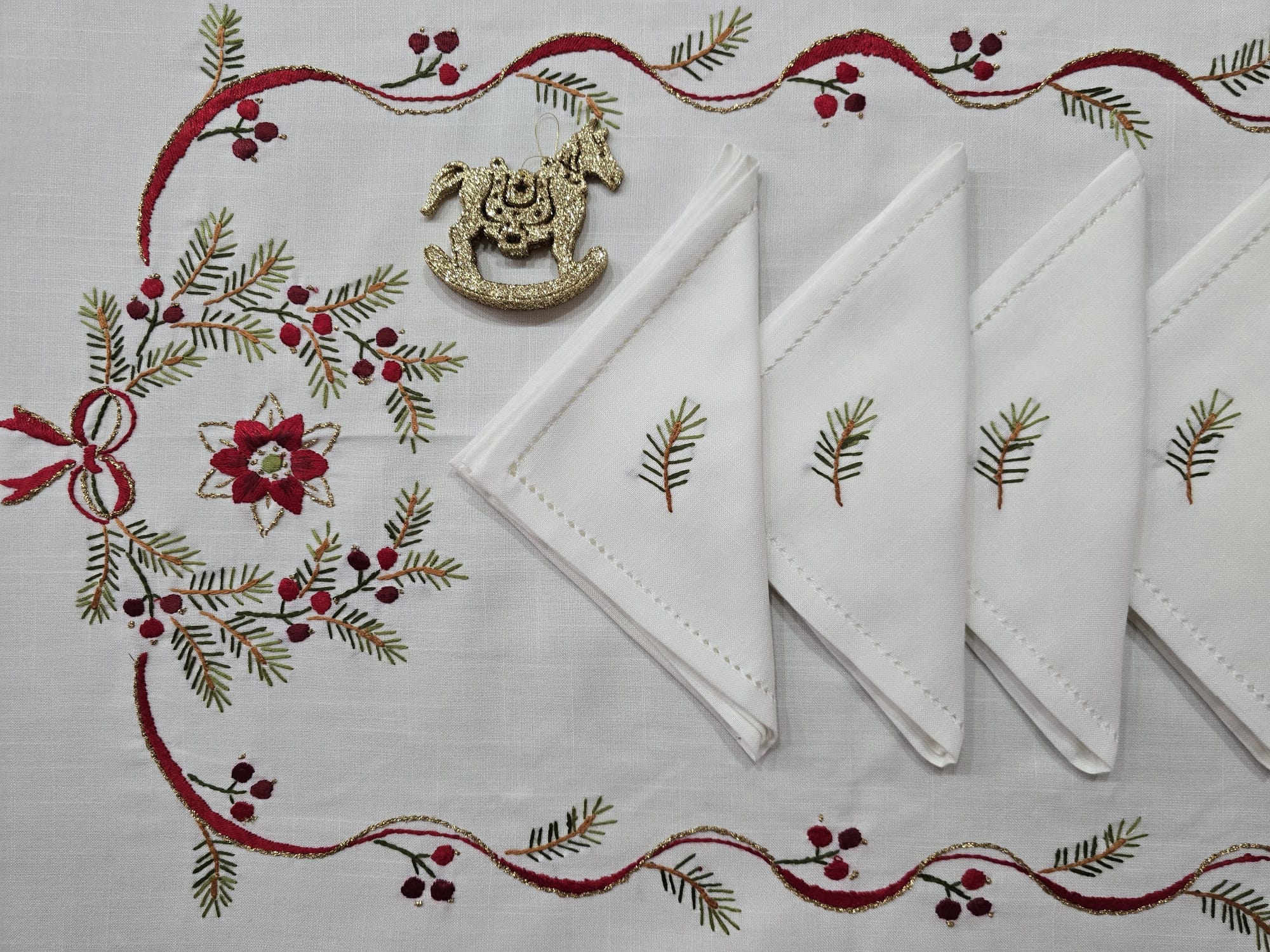 Servizio da Tavola x12 in Lino i Maestri Del Ricamo Albero Di Natale