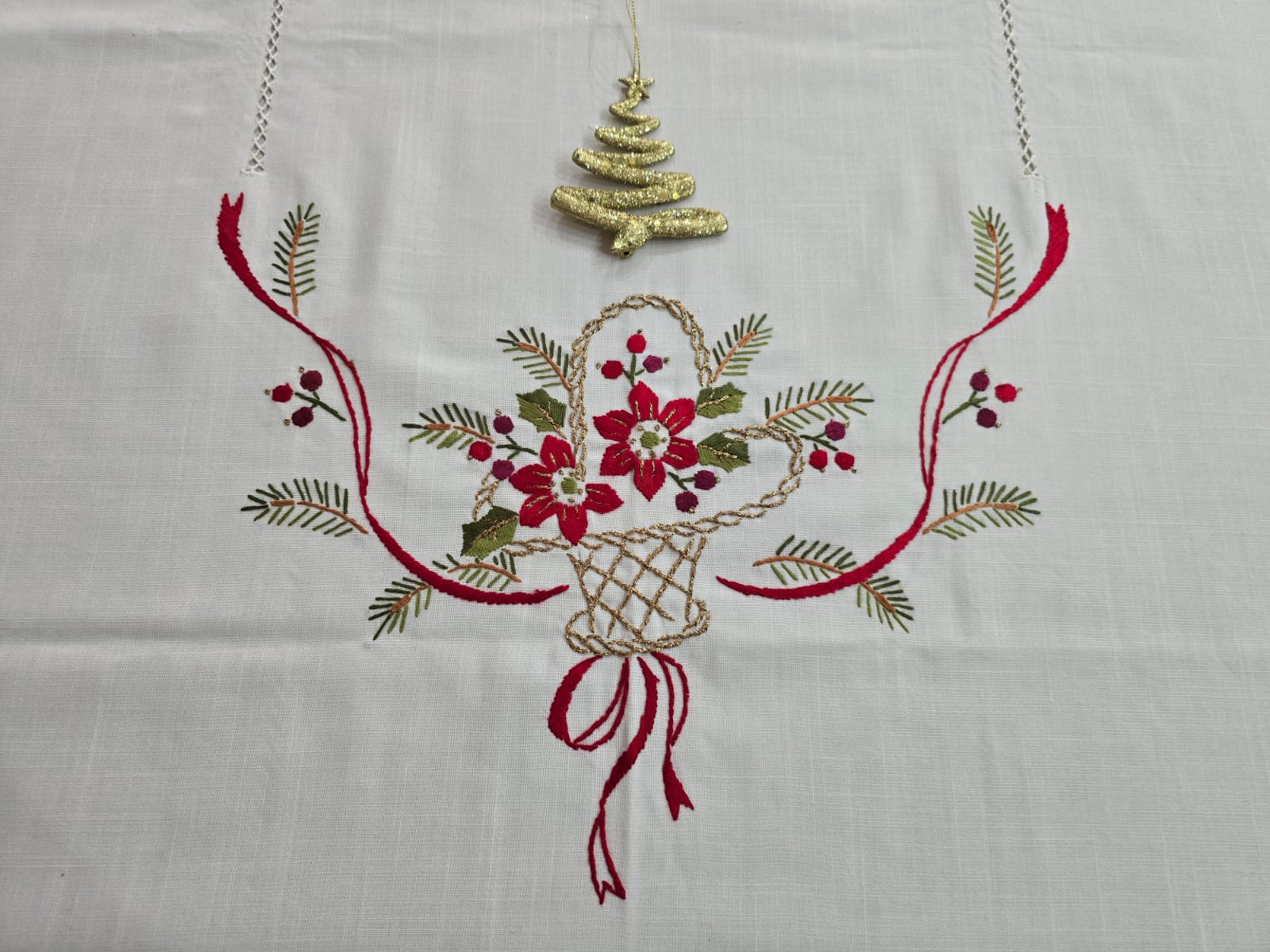 Tovaglia x12 in Lino I Maestri Del Ricamo Cestini Di Natale