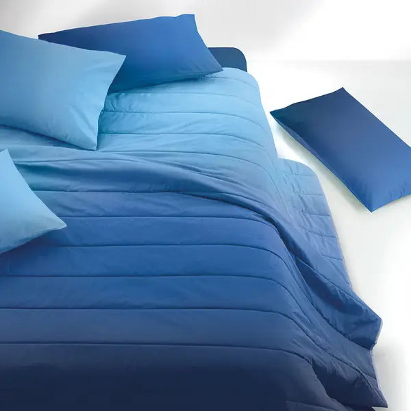 Trapunta Di Piu Color Emotion - Colori brillanti e accesi per un tinta unita degradé unico e originale. La trapunta Di Piu Color Emotion è stampata su tessuto Sweet-touch, morbida saia jacquard da 58 fili cmq, con imbottitura in morbida fibra rigenerata anallergica di poliestere.Una proposta sfumata per chi cerca una versione più divertente e meno banale di un letto tinta unita, dove il passaggio da un tono all altro avviene in modo totalmente graduale e senza il minimo stacco di colore. Peso 320g/mq.Da coordinare con la parure lenzuolo-copriletto della stessa collezione.