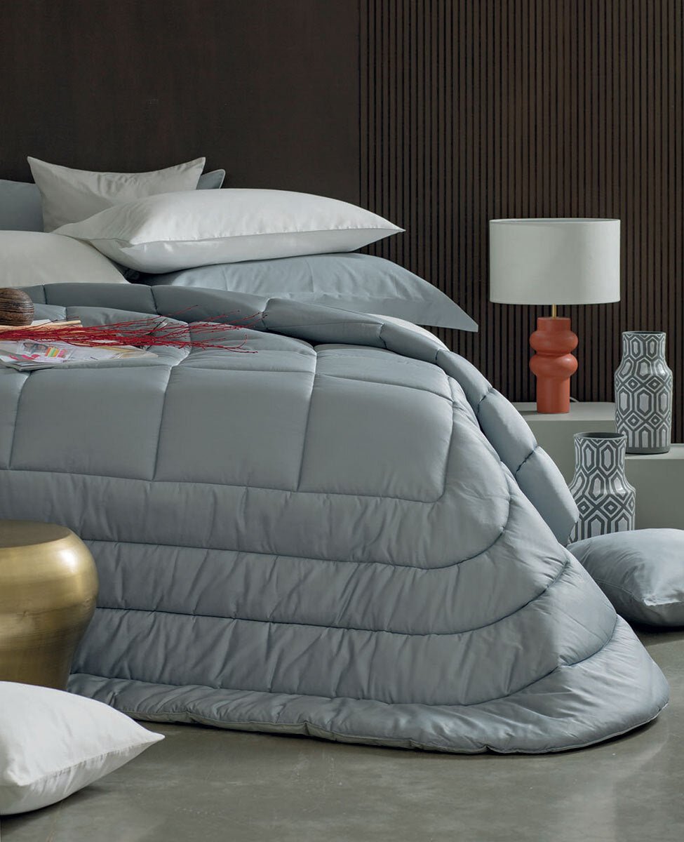 Trapunta matrimoniale in raso di cotone tinta unita.