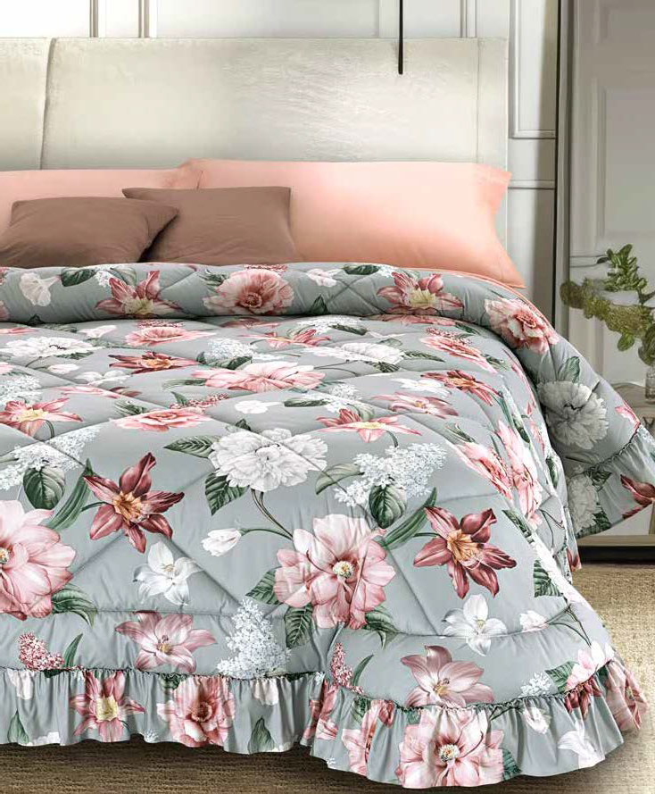 Trapunta in soffice imbottitura siliconata effetto piuma. Stampata in
