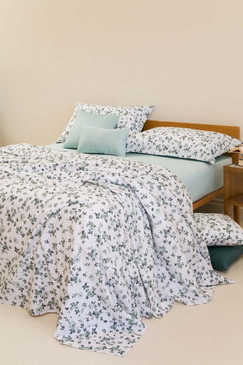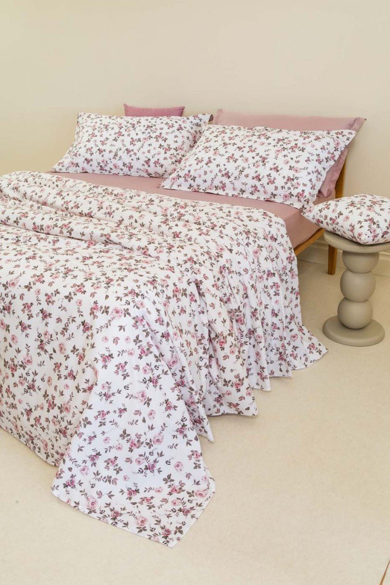 Completo letto Filly : il piacere di dormire inizia dalle lenzuola in Percalle 100% cotone 200Tc disegno floreale all over stampa digitale.