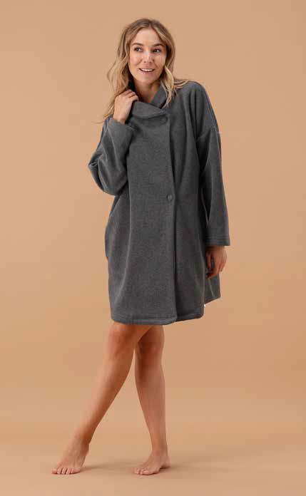 Vestaglia in pile dalla chiusura asimmetrica con bottone.