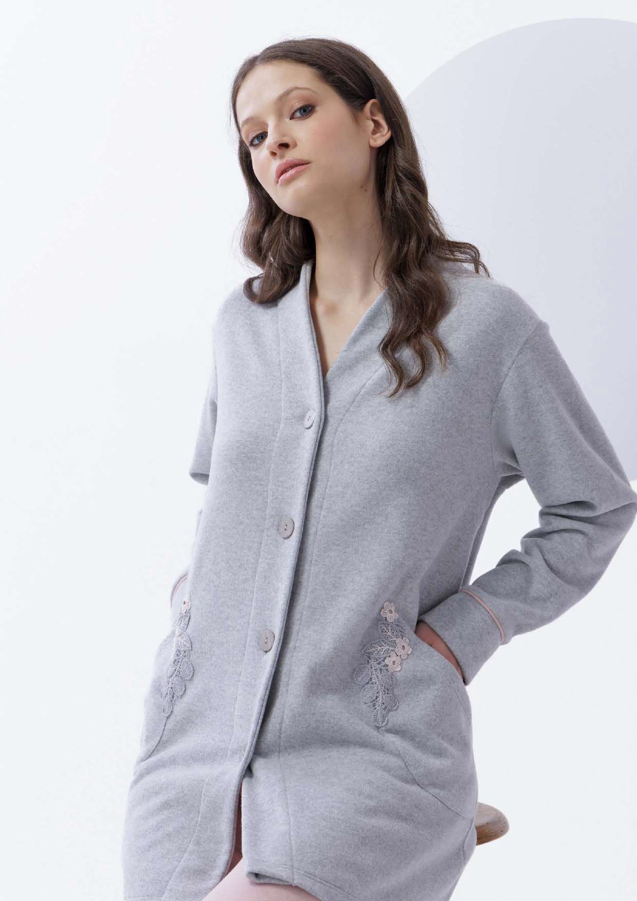Vestaglia Donna con Bottoni in Punto Milano Amadine D3043