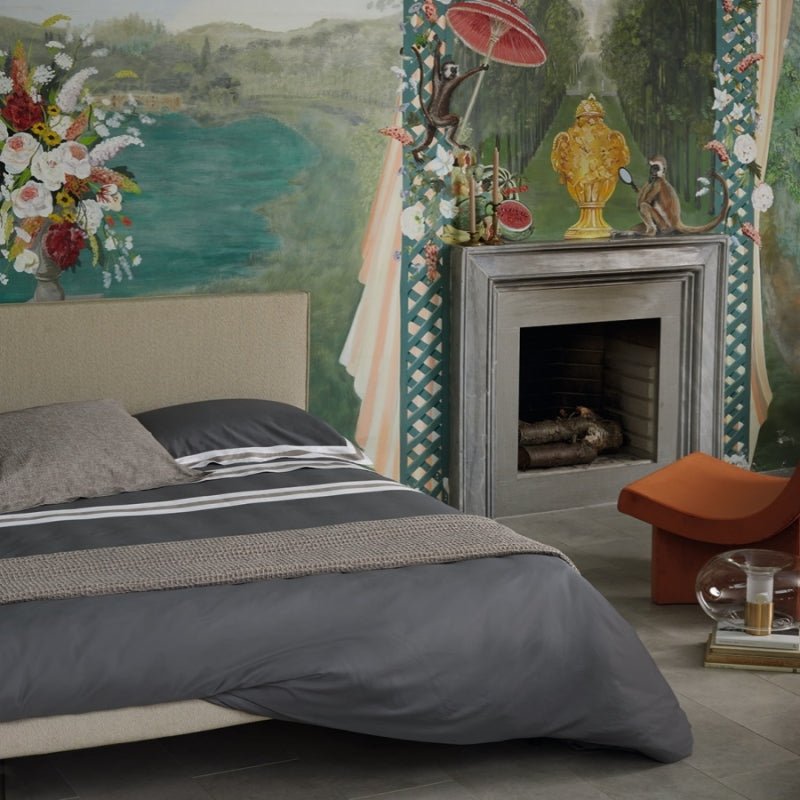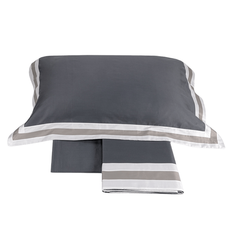 Raso 300TC di puro cotone tinto con finissaggio Silk e Dream ideale per un sonno ristoratore e un dolce risveglio. Realizzato in raso di puro cotone 300TC, è impreziosito da un'importante balza formata da tre bordi di uguale altezza: quella delle federe forma tre volani con angoli a cappuccio. Lenzuolo sotto con angoli.