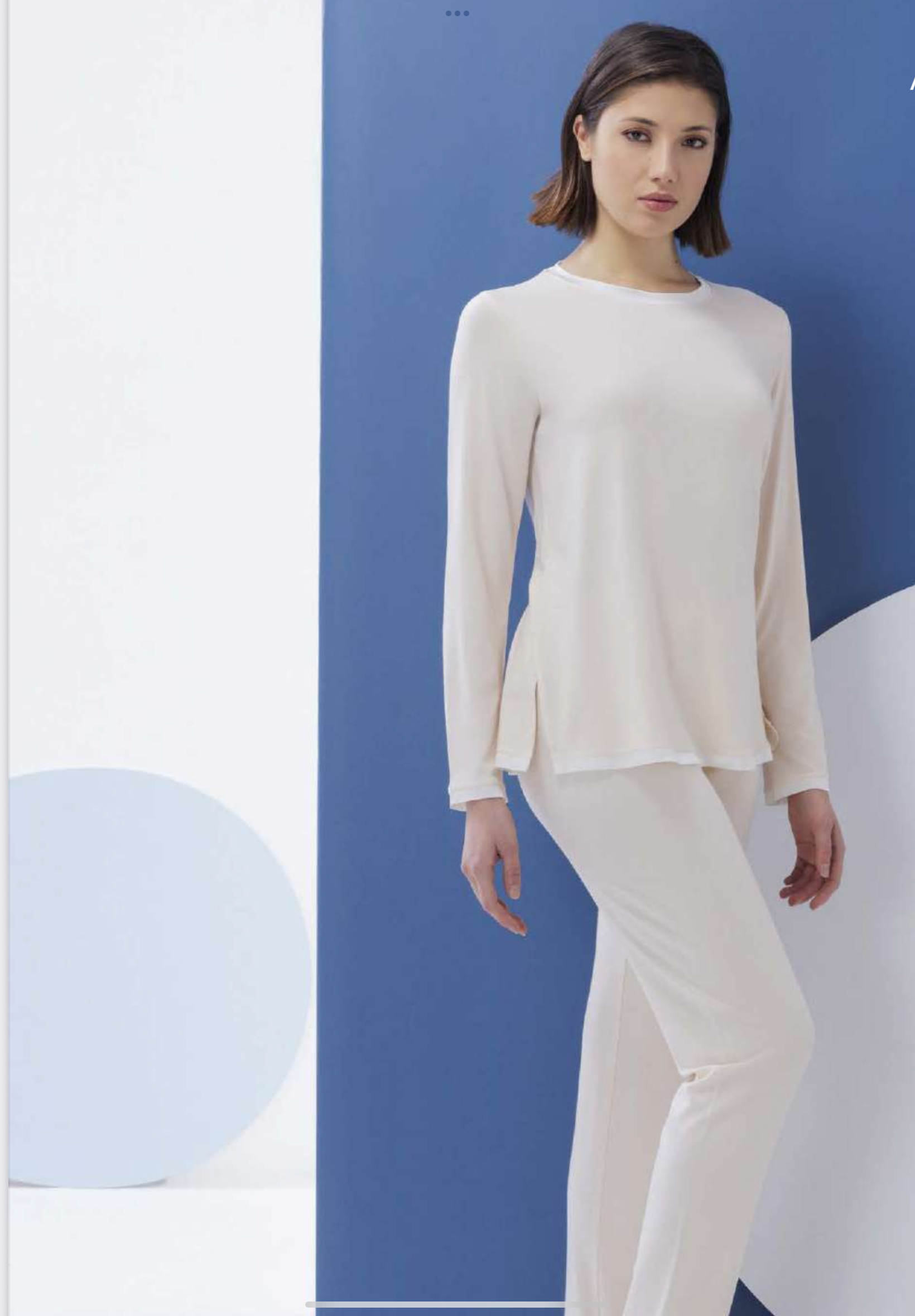 Pigiama rasogola in viscosa di bambù e bordo in seta.