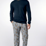 Pigiama Girocollo in Caldo Cotone con pantalone a fantasia.