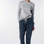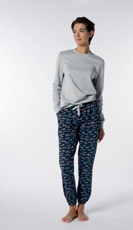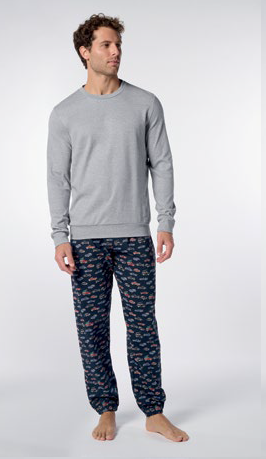 Pigiama Girocollo in Caldo Cotone con pantalone a fantasia.